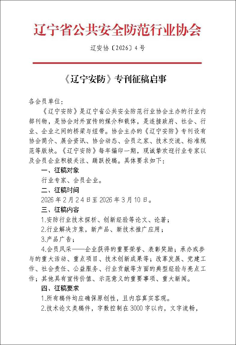 《辽宁安防》专刊征稿启事