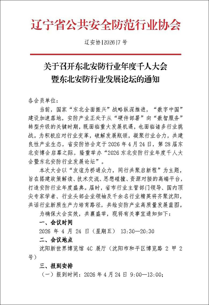 关于召开东北安防行业年度千人大会暨东北安防行业发展...