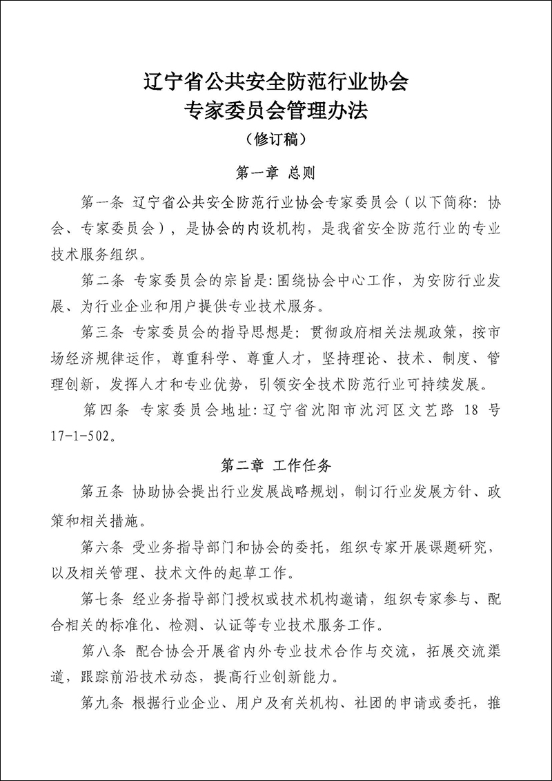 辽宁省公共安全防范行业协会专家委员会管理办法(修订稿)