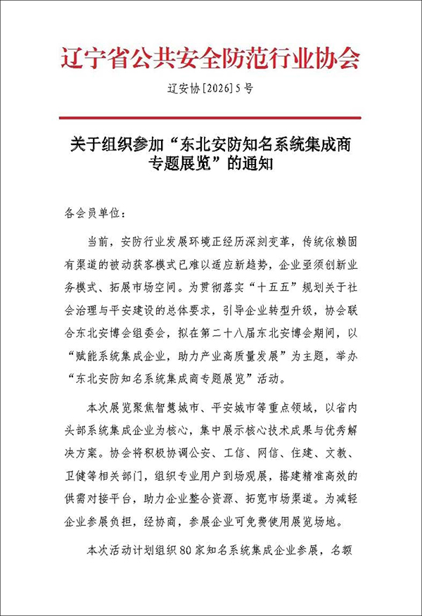 关于组织参加“东北安防知名系统集成商专题展览”的通知